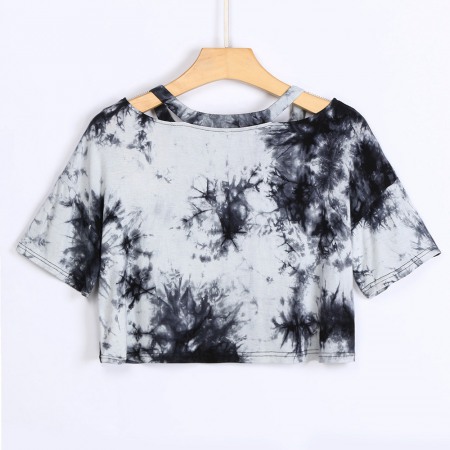 Ink Printing Gradient Mercerized Cotton V-Neck Short T-Shirt
