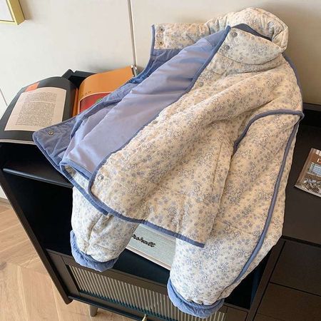 Women's Blue Floral Corduroy Patchwork Cotton Jacket