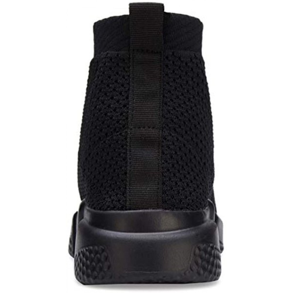 Men's Running Shoes Breathable Knit Slip On Sneakers Lightweight Athletic Casual Sports Shoes High Top All Black