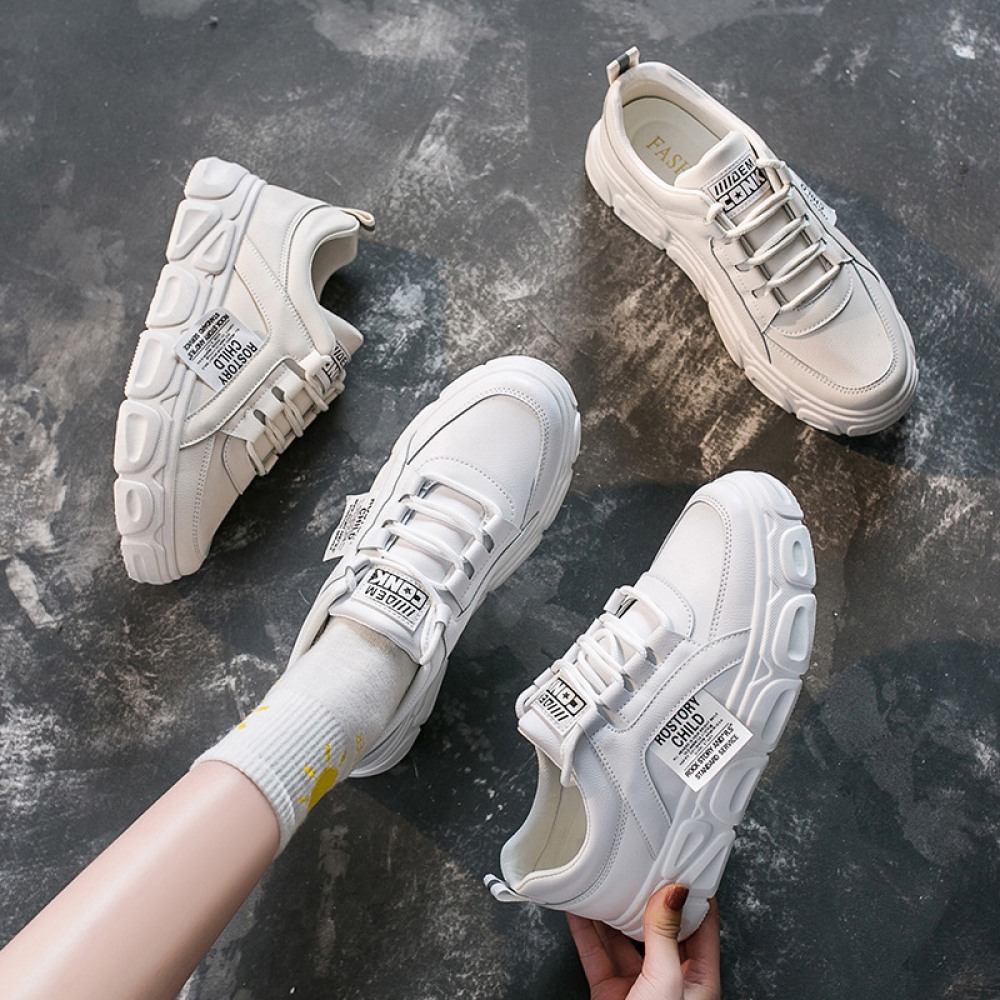 White Shoes Women Spring New Thick-Soled Increased Student Board Shoes Platform Shoes